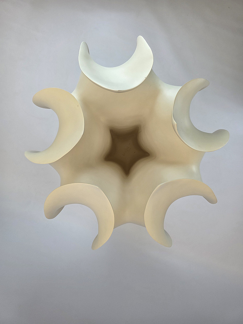 She graduated in 1999 with a degree in Fine Art. Together with two friends, she moved to Nottingham Road, in the Midlands of KwaZulu Natal, to take up work in a bronze casting foundry. There she crossed paths with the well-respected designer Neville Trickett, who introduced her to the botanical photography of Karl Blossfeldt (1865-1932). This was a pivotal encounter which sparked an evolution in her journey with clay. Taking her cue from Blossfeldt’s monochromatic prints, she decided to work with white and black clay, as she saw it as creating a pure canvas for light and dark to “shape” the piece.