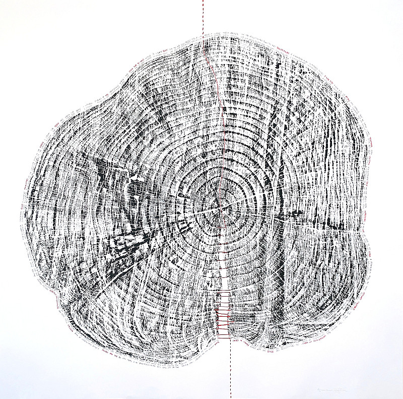 , Monique Day-Wilde , Botanical monoprint with stitching on paper