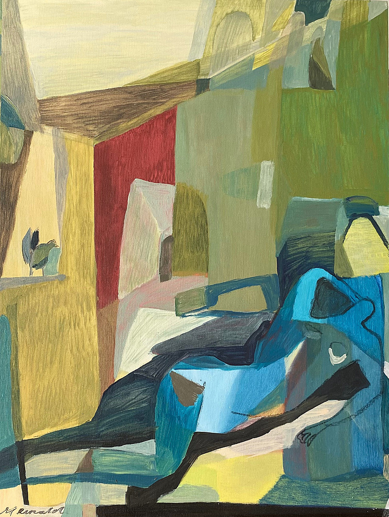 , Michaela Rinaldi , Acrylic, ink and charcoal on canvas board, framed, kiaat shadow box