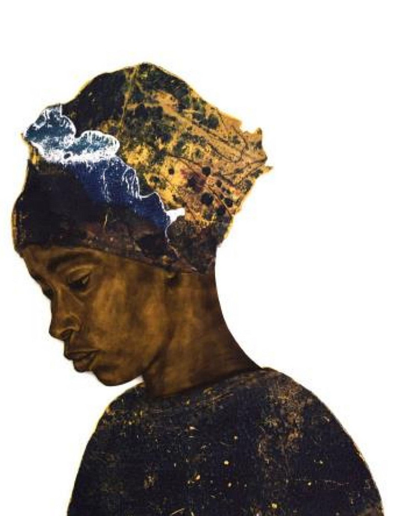 Candle soot, photo transfer on wood