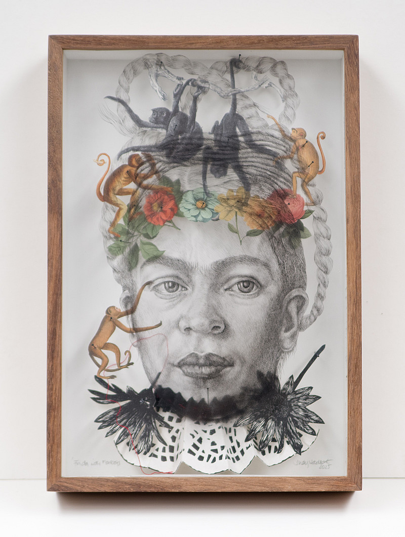 , Judy Woodborne , Paper sculpture with engraved Perspex, collage, linocut, pins and glue