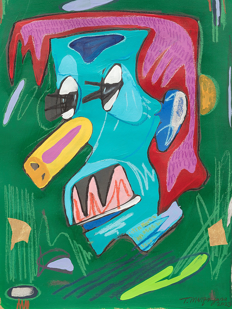 , Thembalethu Manqunyana , Acrylic, oil pastels, charcoal & gold leaf on paper (framed)