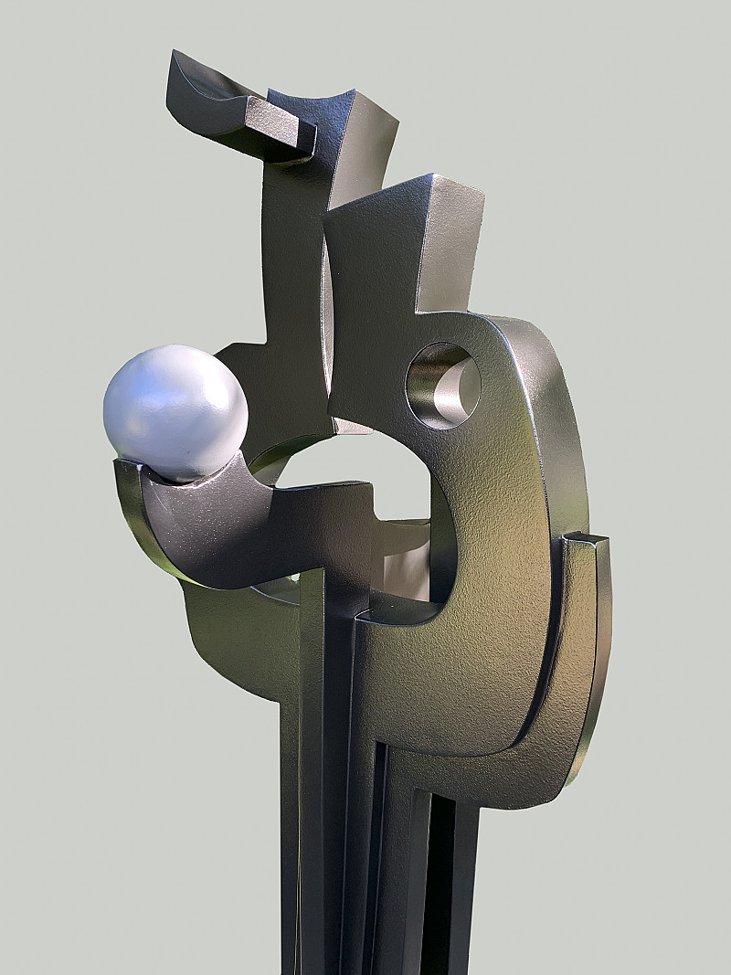 Black spray painted mild steel sculpture