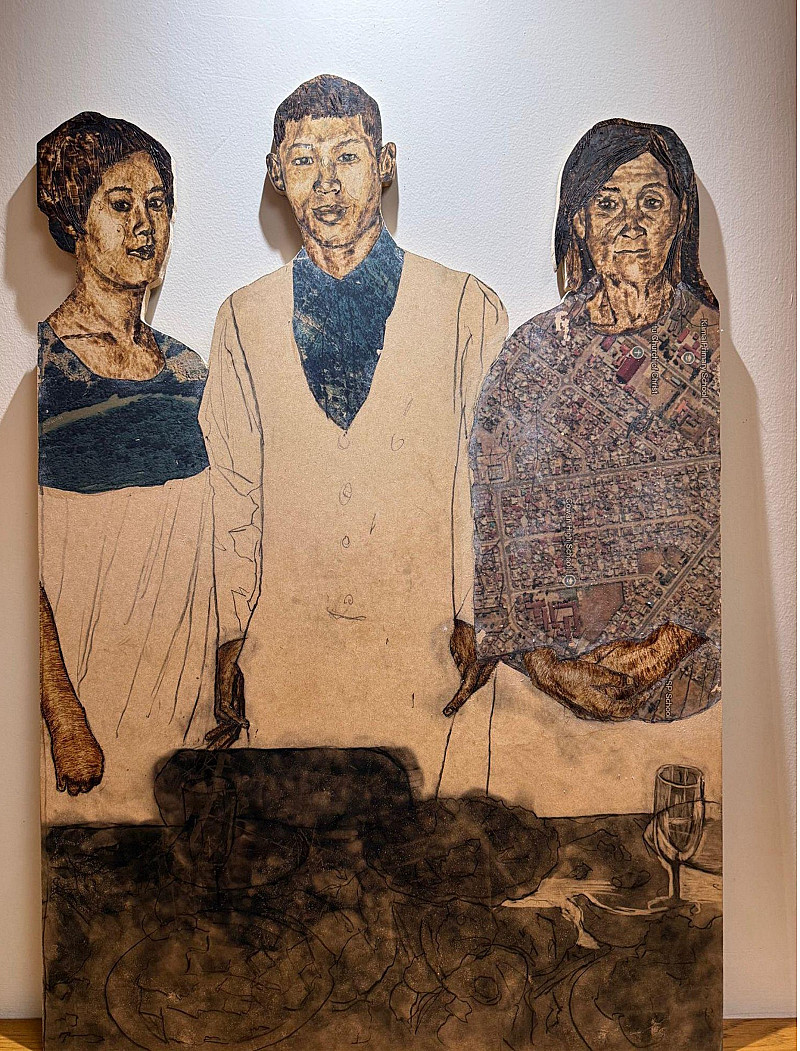 , Brünn Kramer , Candle soot, photo transfer and burning on wood