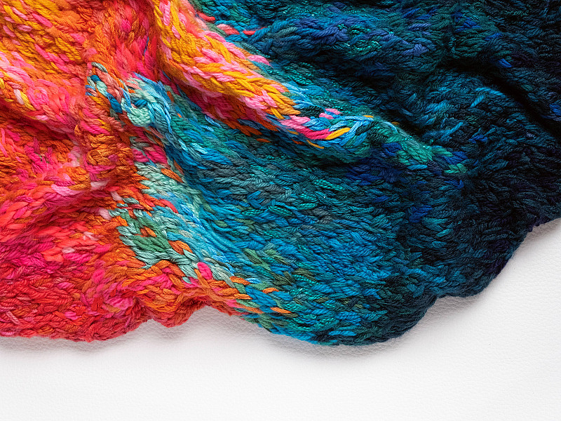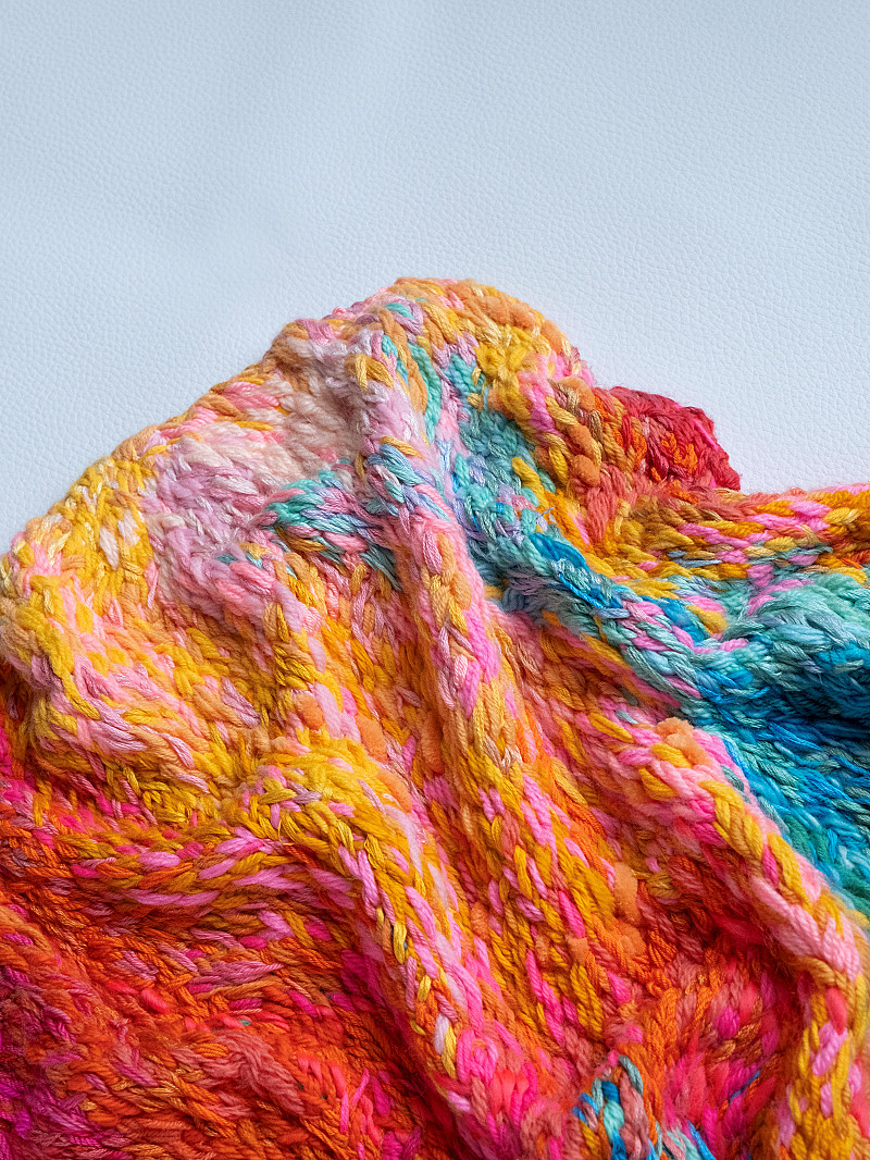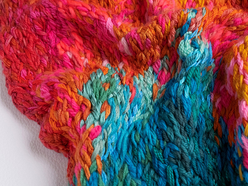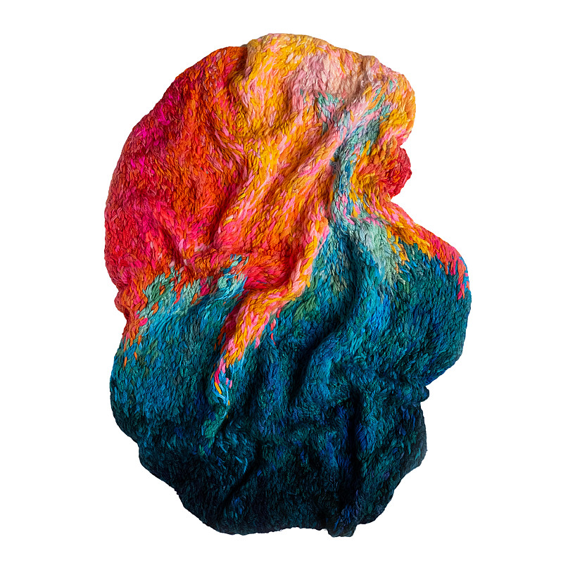 Fabric sculpture in cotton, bamboo, natural and acrylic wool, silk on monks cloth