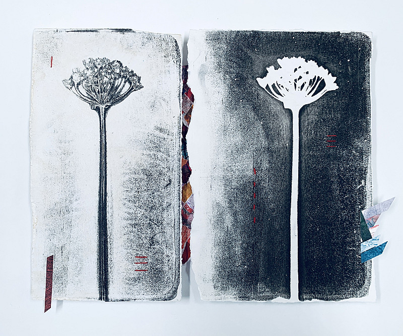 , Monique Day-Wilde , Botanical monotype construction with woven paper and hand stiched details