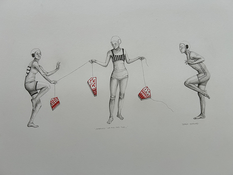 , , Graphite colour pencil and hand embroidery
