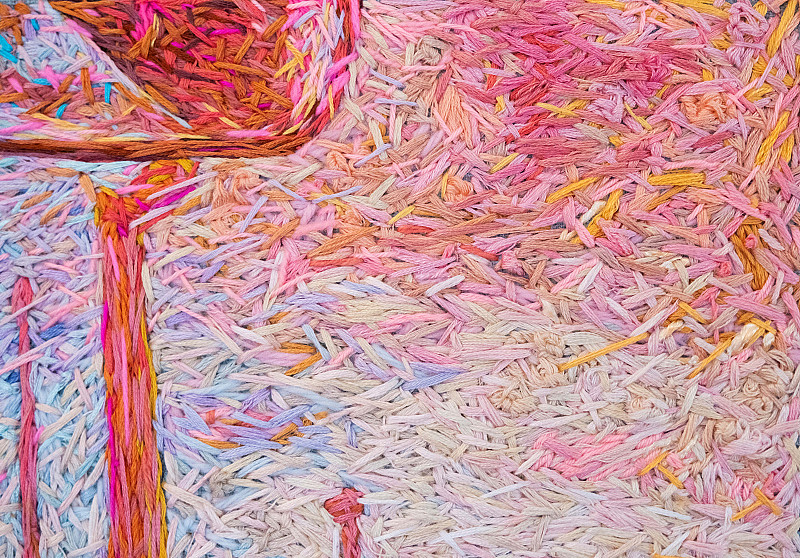 Cotton, bamboo, natural and acrylic wool, rayon on linen