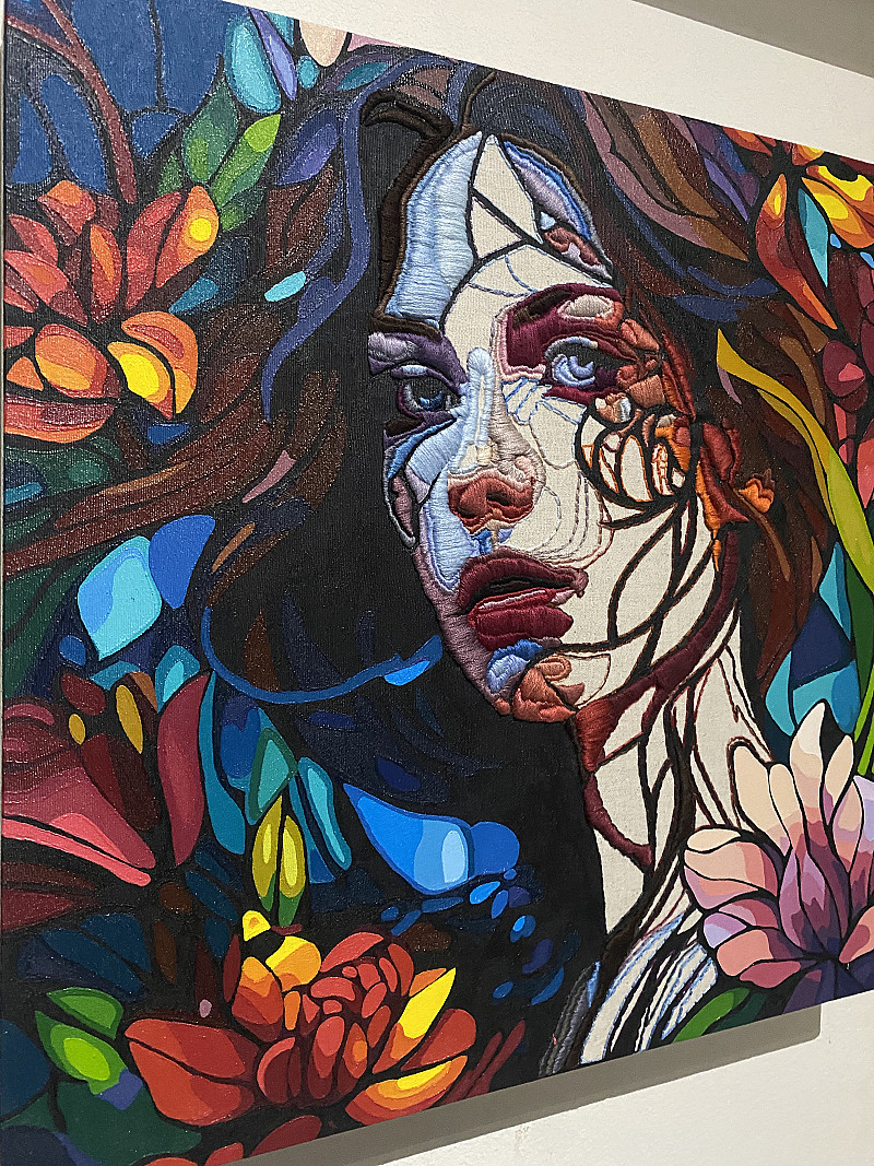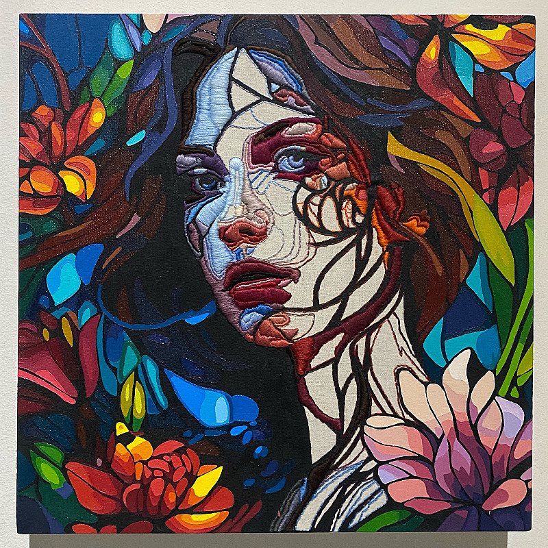 , JC Bolke , Cotton embroidery thread, acrylic paint on linen